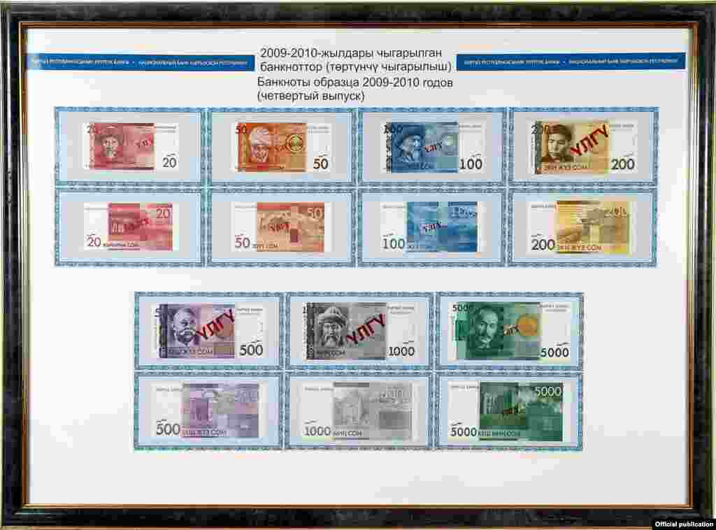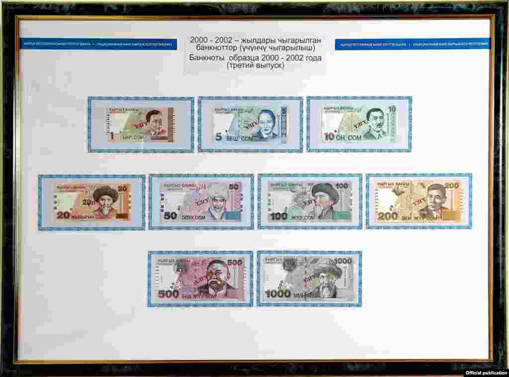 Алгач эң кымбат банкнот 100 сом болсо, 2000-жылы 200, 500, 1000 сомдук, 2010-жылдан тарта 5000 жана былтыр 2000 сомдук банкнот жүгүртүүгө киргизилген.