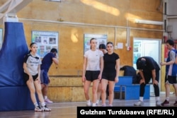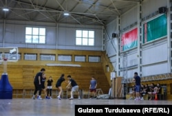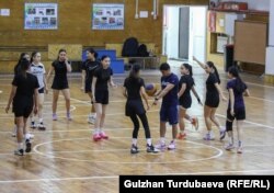 Бишкектеги №29 мектепте күн сайын баскетбол боюнча машыгуу өтөт. Биз барганда, спорт залда кыздар менен балдар эки командага бөлүнүп ойноп жатышкан экен. Бул Кыргызстандын баскетбол боюнча кыздардын курамасы. Өлкөдө башка команда жок болгондуктан, кыздар эркектердин командасы менен чогуу машыгып, ойногонго туура келет.