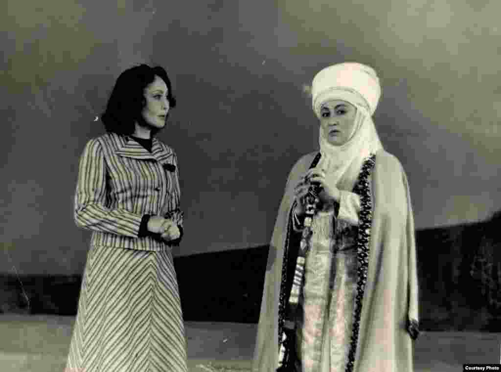 Кыргыз Республикасынын Эл артисти Жамал Сейдакматова Кыргыз ССРинин эл артисти, Токтогул сыйлыгынын лауреаты, актриса Даркүл Күйүкова менен.